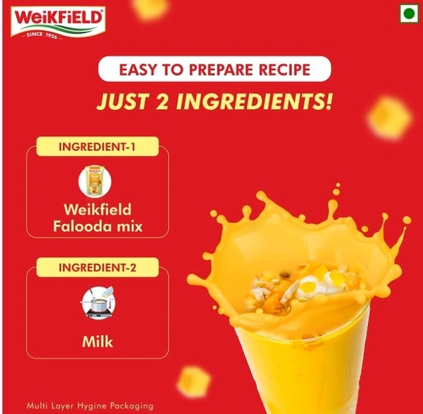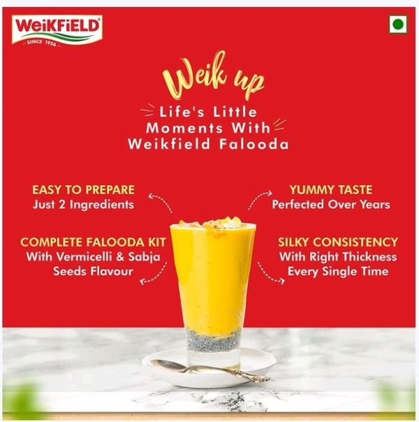 Make delicious & refreshing falooda with a smooth creamy texture instantly and easily with Weikfield Mango Falooda Mix. The mix is 100% vegetarian & contains no egg. One carton easily makes 6 servings.Also available in strawberry & kesar pista flavors.