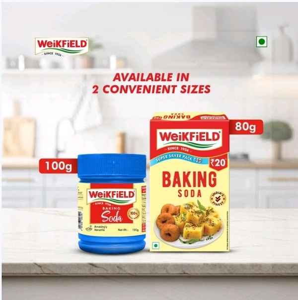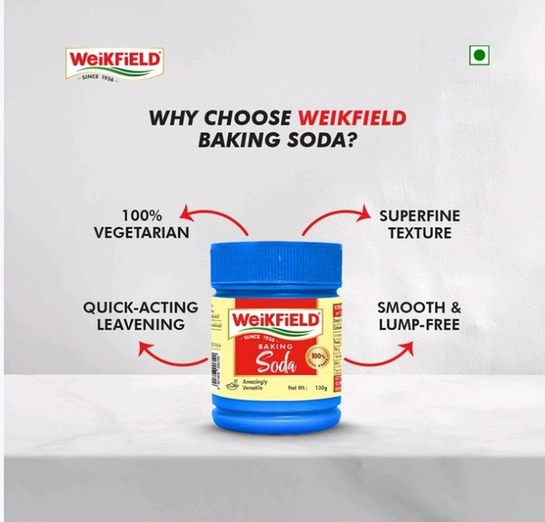 Weikfield Baking Soda comes in a 100 gm reusable jar. Amazingly versatile Soda Bicarbonate. With Weikfield you get accurate composition & quality products. Enjoy the world's finest from Weikfield.
