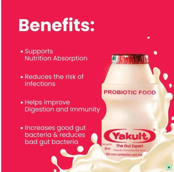 Yakult is a delicious probiotic drink that helps improve digestion and helps build immunity. Yakult contains 6.5 billion beneficial bacteria that reach our intestines alive and restore the balance of the beneficial or friendly bacteria in the gut.