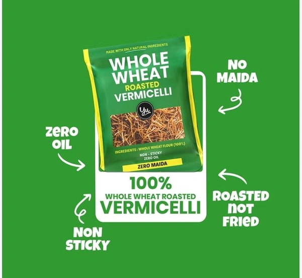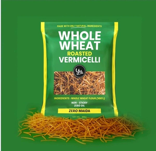 100% Whole Wheat Roasted Vermicelli (Atta Seviyan) is a healthy twist on the classic Indian breakfast staple. Made from whole wheat, gently roasted for a rich, nutty flavour, it cooks fast, stays non-sticky and high in fibre. Perfect for Upma, kheer, or vermicelli noodles, it's made with zero maida, zero oil a clean, nutritious choice for everyday meals.